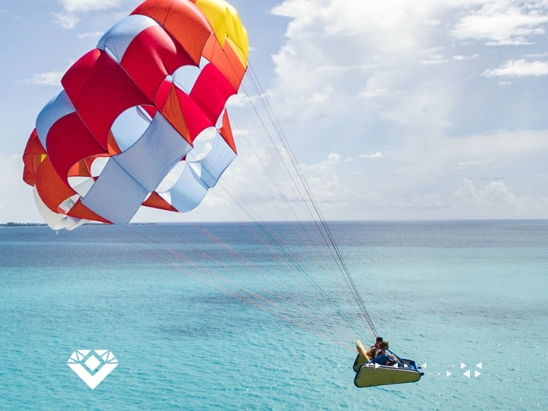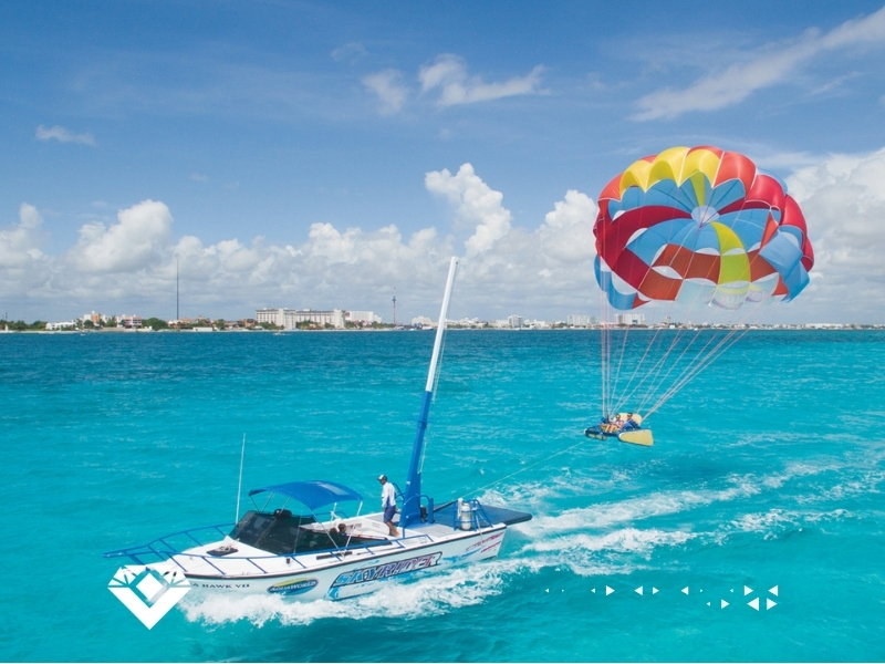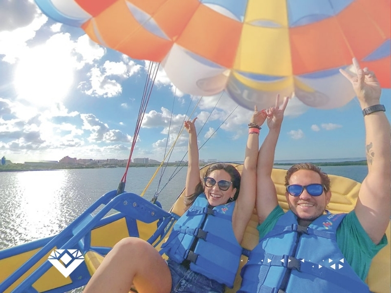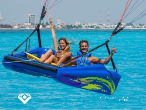 Fly comfortably and enjoy Caribbean views from 100m high. Fly with your partner comfortably seated in a specially designed chair that doesn’t require a harness and enjoy the breathtaking view from the heights of the blue sky over the Mexican Caribbean. The boat, equipped with a takeoff and landing platform to keep passengers dry, reaches an approximate height of 100 meters.